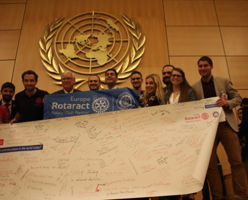This month we were invited to Rotary United Nations and we not only pinned a new Rotaractor in Europe – 2017-18 RI President Ian H.S. Riseley, but we were also actively involved in event. Mr. Justin P. Hadjilambris, President of Rotaract Europe, and Ms. Anna Lucky Dalena, Vice-President of Rotaract Europe, were panelists discussing the Education and Science as a pathway to Peace workshop (click here to watch).