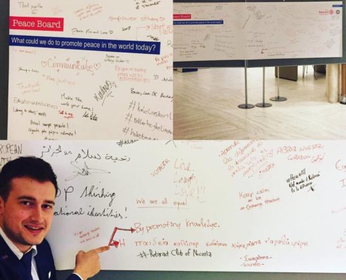 Rotaract Europe also sponsored the creation of a peace board which was outside our workshop for guests to sign with “What they could do to promote peace in the world today?”