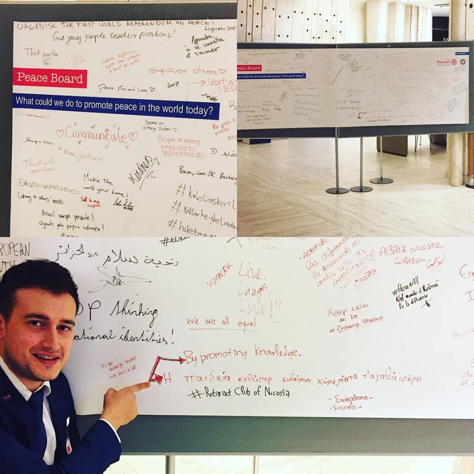 Rotaract Europe also sponsored the creation of a peace board which was outside our workshop for guests to sign with “What they could do to promote peace in the world today?”
