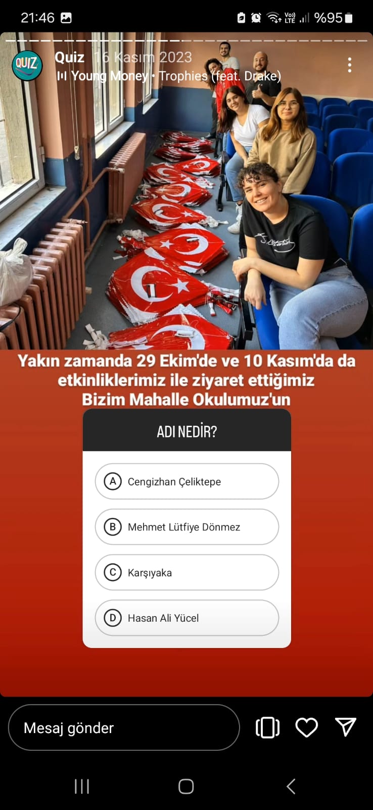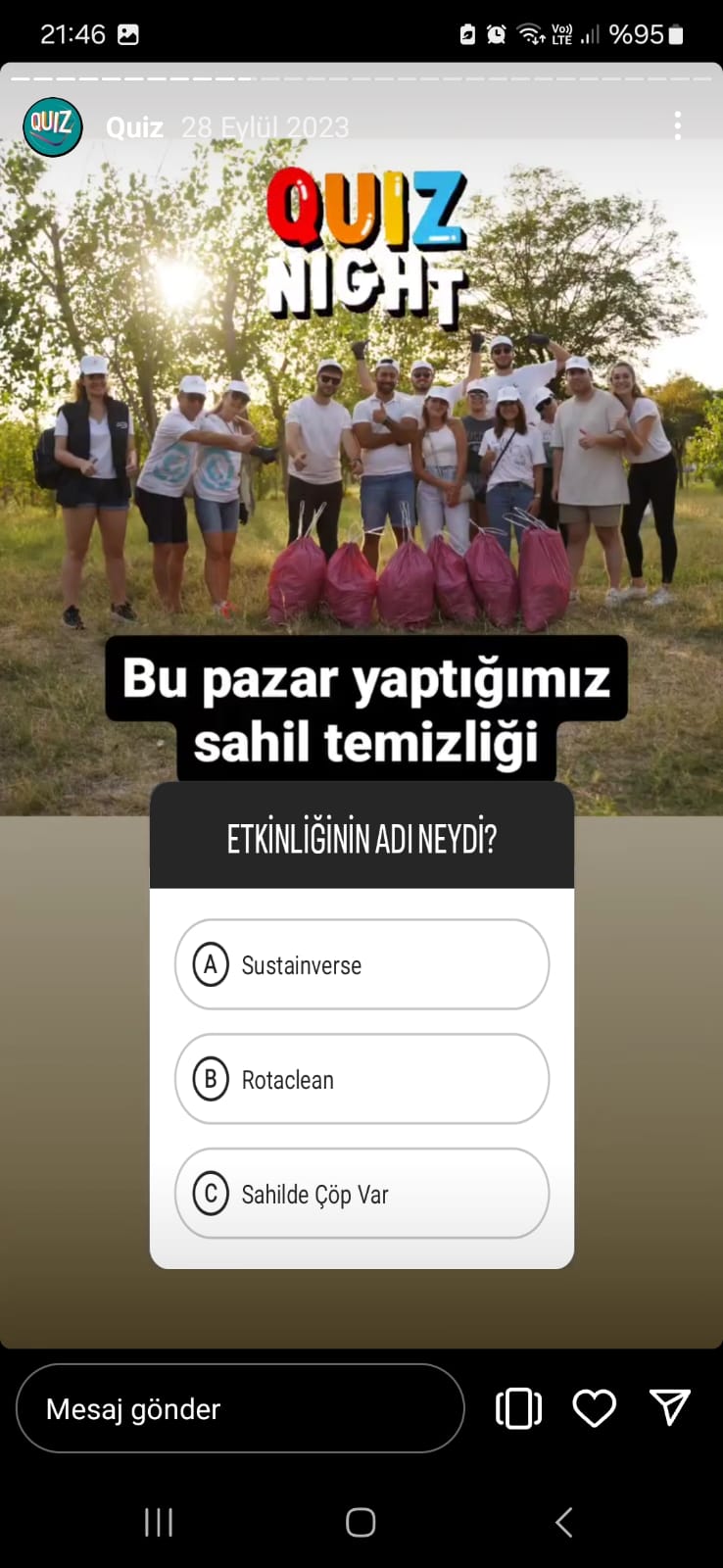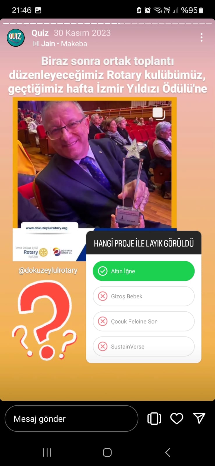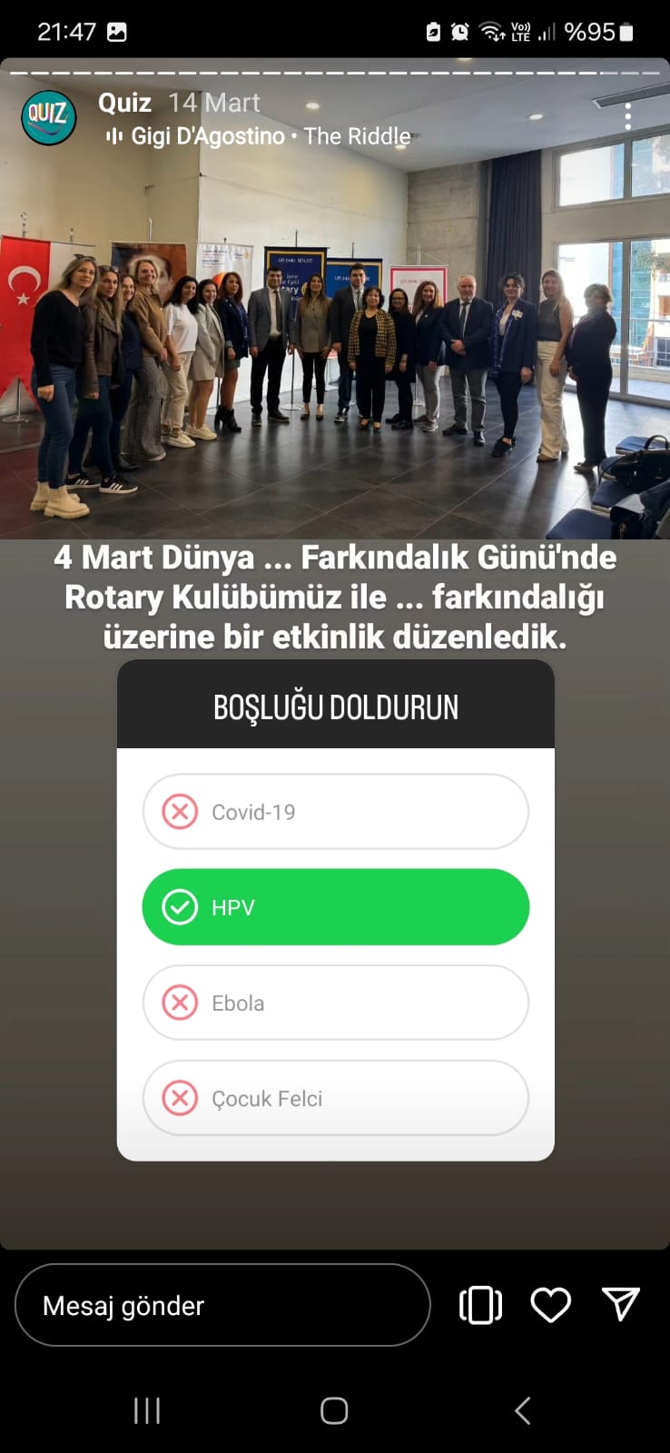 Within the scope of our project, every meeting day we ask a question whose answer is available on our social media. The purpose of the questions is to introduce our club and its activities. We notify the person who answers the question the fastest via video at the end of the meeting. Thank you for participating in our survey.We want to attract the attention of potential Members and include them in our family. We also want to announce projects that belong to the general society and increase their area of ​​impact.