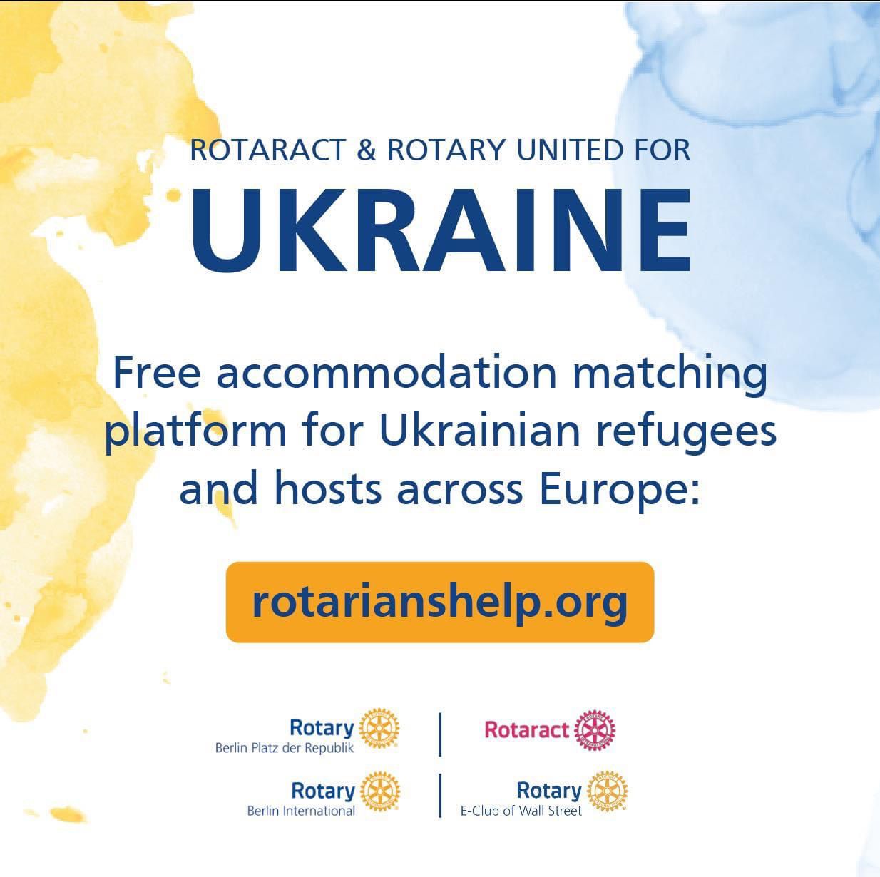 The Rotary Club Berlin Platz der Republik, the Rotary E-Club of Wall Street and the Rotary Club Berlin International together with a task force of Rotaractors from all over Europe have joined forces and developed a free matching platform for Ukrainian refugees and hosts across Europe. Our collective goal is to secure temporary accommodation for Ukrainian refugees while en-route to their intended destination.